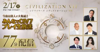 「シヴィライゼーション VII」発売記念ライブ番組を2月17日19:00から配信。阿部なつきさん,コロチキのナダル&西野さんらが出演