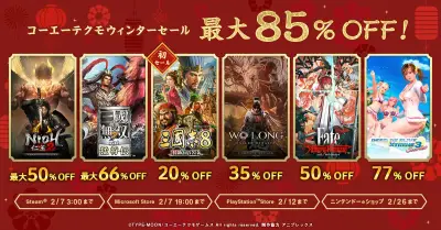 『三國志8 リメイク』20%オフ、『Fate/サムライレムナント』50%オフ、『ウォーロン』35%オフなど。コーエーテクモ“ウィンターセール”が開催中【最大85%オフ】