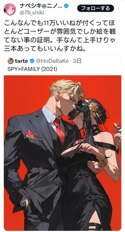【画像】有名絵師さん、11万いいねのAI絵(腕3本)にブチギレ「ユーザーも雰囲気でしか絵を見ていない証明」