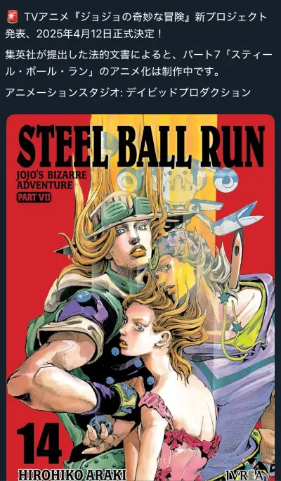 ジョジョ7部スティールボールラン、アニメ化決定!?