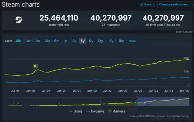 Steam同時接続ユーザー数がついに4,000万人を突破!『モンハンワイルズ』が大貢献か