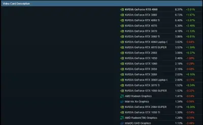 SteamユーザーのGPU使用割合、「GeForce RTX 3060」が王者陥落へ。「GeForce RTX 4060」が新たな首位に輝く