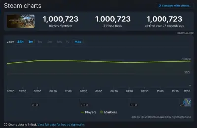 『モンハンワイルズ』PC版あっという間に同時接続数98万7,482人を記録!リリース日の夜にはハンター100万人突破も確実?