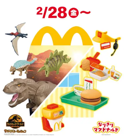 マクドナルド、ハッピーセット「ジュラシック・ワールド/サバイバル・ミッション」2月28日発売組み立てて遊べる恐竜フィギュアが登場