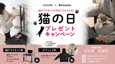 愛猫家必見! ゲーミング猫デスクセットが貰えるバウヒュッテ×ビビラボの猫の日キャンペーン開催
