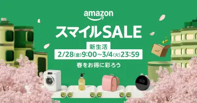 「Amazon スマイル SALE 新生活」2月28日から3月4日まで開催最大5,000ポイント還元のキャンペーンも実施