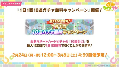 「ウマ娘」、4周年の1日1回10連無料ガチャは2月24日~3月8日まで。最大120連が無料