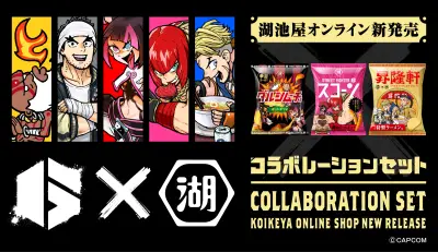 『スト6』×「湖池屋」のコラボが正式発表。ラーメン屋・昇隆軒(しょうりゅうけん)やダルシムーチョが発売へ。『がんばれジュリちゃん』作者・観虐氏描き下ろしイラストを使用したコラボセット商品が登場
