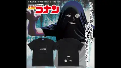 名探偵コナン』に登場する“犯人”に変身できちゃうTシャツが再販、2月23日まで予約受付中。裏返さずに使用すればいたって普通の黒シャツなので、普段使いでも着用可能。再入荷は2025年5月中旬を予定