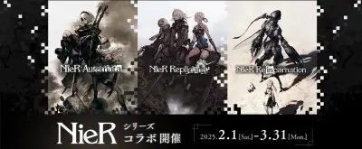 『NieR』シリーズのコラボカフェが開催決定。前期と後期に分けてシリーズ3作品にフィーチャーしたコラボメニューや先行グッズ販売などが実施。本日18時よりカフェスペースの予約も開始